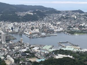 宿泊先から徒歩で10分ほどで稲佐山のロープウェイがあります。