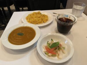 いろんなスパイスが絡み合い濃厚なのに、上品で食べやすい。これは日本人好みの味かも。サフランライスもしっとりとしたお味で自分好み。美味しかったです。